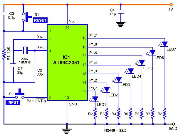 This is the circuit diagram of electronic dice which built based microcontroller chip of Atmel AT89C2051. The application of this…