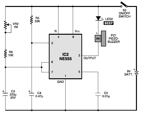 Figure 2 shows this timer world. It employs IC NE555 setup in monostable manner. Initially, once you press transition S2, the monostable triggers and its particular output will go high regarding 10 min’s. Thereafter, its production goes low to supply a beep sound in the piezobuzzer as well as lights the red LED (LED2) implying that excitement time is over.